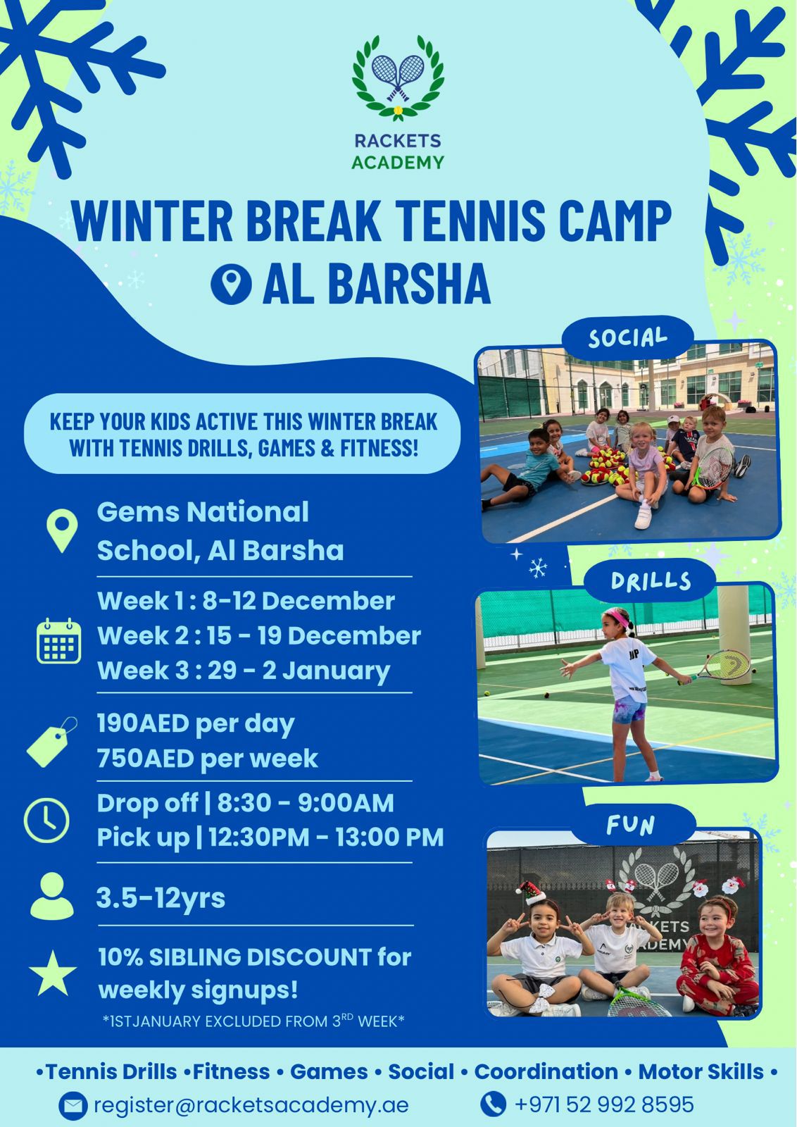 5 matches - 3 in single + double + mixed. Sign in for Doubles and Mixed Doubles to be held at the tournament desk on 22nd December between 9am - 6pm! Each player can enter 2 age categories. JWTS and Rackets Academy invite all players to play the JWTS Rackets Academy Dubai Junior Open in […]
