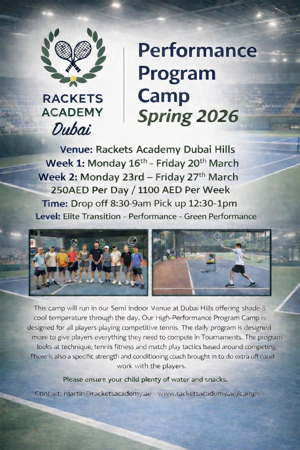 Rackets Academy Indoor – Dubai Hills Dubai Hills, Dubai Hills, Dubai, United Arab EmiratesRackets Academy Dubai Hills Organized Match Play